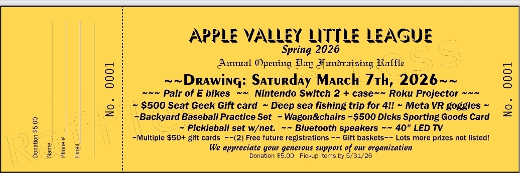 Our huge Spring raffle fundraiser is underway! You can buy a book from your manager or from the snack bar, or seek out your board member